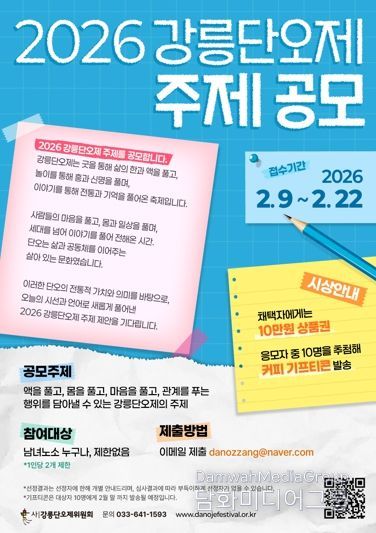 시민행정신문 기자 | (사)강릉단오제위원회는 2026 강릉단오제 주제 공모를 오는 2월 9일부터 2월 22일까지 진행한다.