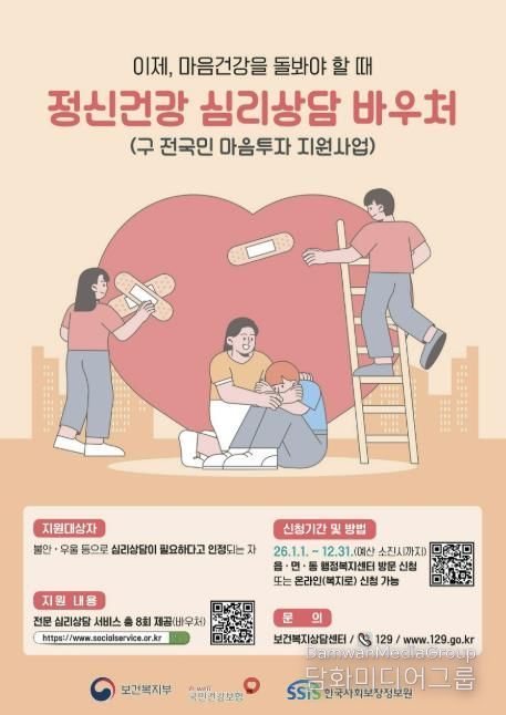 시민행정신문 기자 | 성남시는 우울, 불안, 스트레스 등으로 정서적 어려움을 겪는 시민을 위해 ‘정신건강 심리상담 바우처 사업(옛 전국민 마음투자 지원사업)’을 시행한다고 9일 밝혔다.