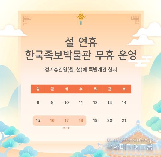 시민행정신문 강갑수 기자 | 대전 중구 한국족보박물관에서는 2026년 설 연휴 기간인 오는 14일부터 18일까지 5일간 휴관 없이 정상 운영한다고 밝혔다.