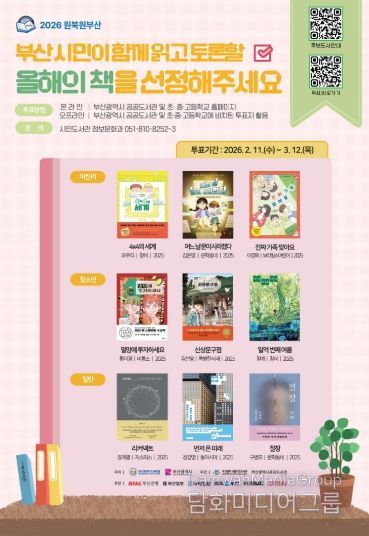 부산광역시립시민도서관(관장 이은경)은 2026 원북원부산 올해의 책 선정을 위해 2월 11일부터 3월 12일까지 어린이, 청소년, 일반 후보도서 9권에 대해 시민투표를 실시한다.