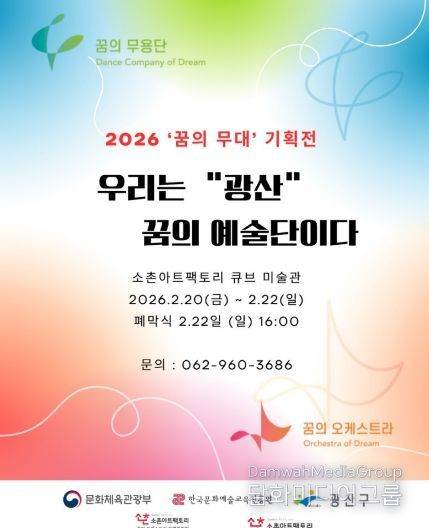 시민행정신문 기자 | 광주 광산구는 20일부터 22일까지 소촌아트팩토리 큐브미술관에서 2026 ‘꿈의 무대’ 아카이빙전 ‘우리는 ‘광산’ 꿈의 예술단이다‘를 연다고 밝혔다.