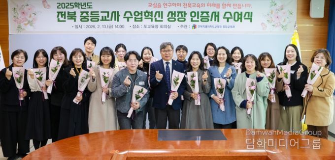 시민행정신문 강갑수 기자 | 전북특별자치도교육청은 13일 5층 회의실에서 ‘2025학년도 중등교사 수업혁신 성장인증서 수여식’을 개최하고, 교실수업 혁신을 선도한 우수교사를 인증했다.