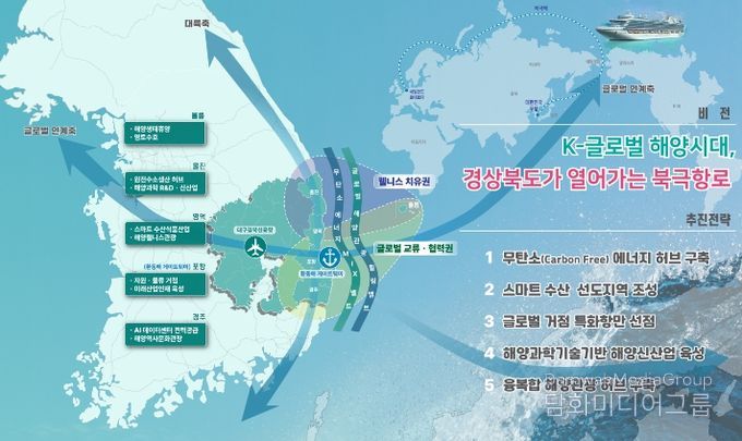 우선 영일만항을 북극항로 대응 관문항으로 육성, 영일만항과 부산항을 잇는 해상 Two-Port 체계를 구축한다.