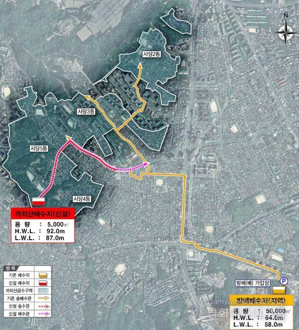 구는 사당동 일대가 재개발‧재건축 등 도시정비사업으로 인해 향후 급격한 인구 증가가 예상되는 만큼, 사전에 미리 까치산배수지 건설 사업을 추진하고 있는 것이다.
