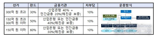 특히, 해양수산부는 2024년부터 지원 대상을 연안화물선까지 확대했고, 올해부터는 원자재 가격 상승 등 선박 건조 비용 증가를 감안해 지원비율별 선가 구간을 2.5배 상향*했다. 펀드 지원에 선정된 선사는 지원 선박을 운항하면서 15년간(3년 거치, 12년 분할상환) 지원 자금을 상환한 후, 선박 소유권을 최종 취득하게 된다.