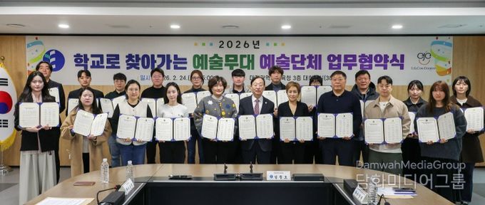 시민행정신문 기자 | 대전시교육청은 2월 24일 오후 3시, ‘2026년 학교로 찾아가는 예술무대’의 원활한 추진을 위해 20개 예술단체와 업무협약을 체결했다.