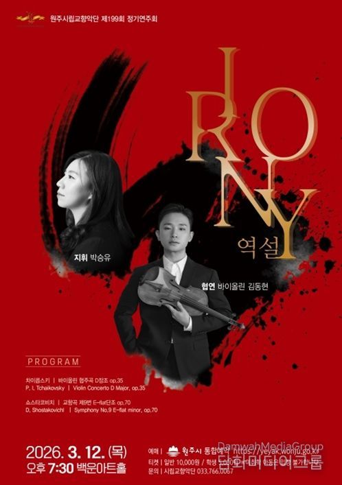 시민행정신문 강갑수 기자 | 원주시립교향악단은 다음 달 12일 오후 7시 30분 백운아트홀에서 제199회 정기연주회 ‘IRONY 역설’을 개최한다.