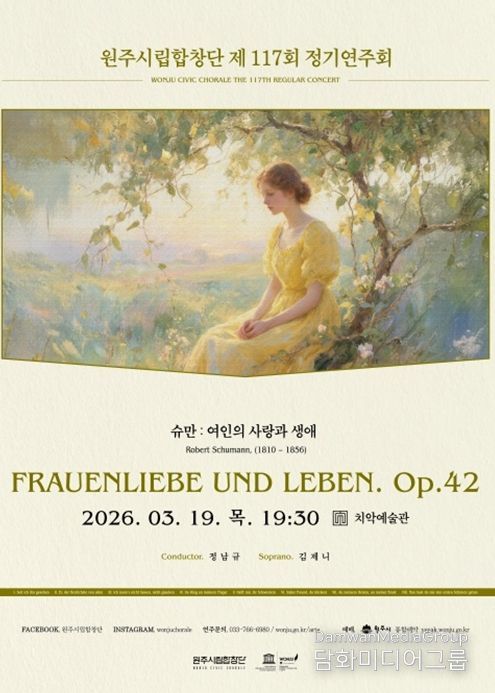 시민행정신문 강갑수 기자 | 원주시립합창단은 다음 달 19일 오후 7시 30분 치악예술관에서 제117회 정기연주회 ‘여인의 사랑과 생애’를 개최한다.