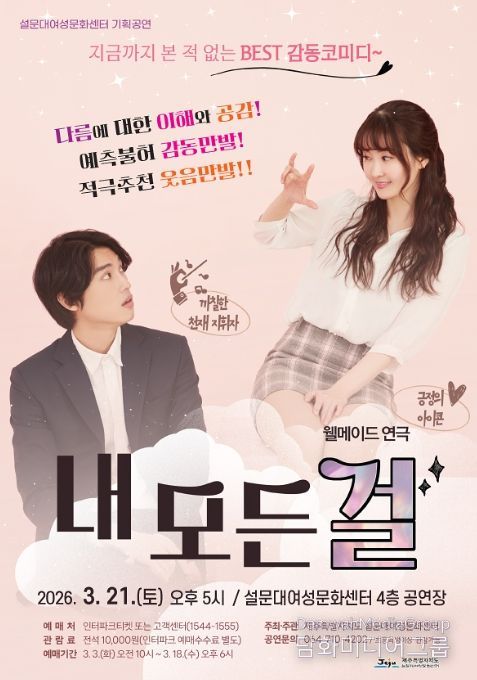 시민행정신문 기자 | 제주특별자치도 설문대여성문화센터는 3월 21일 오후 5시 센터 4층 공연장에서 ‘설문대 문화의 날’ 3월 기획공연으로 연극 ‘내 모든 걸’을 선보인다고 밝혔다.