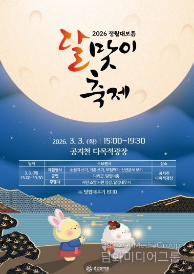 춘천문화원은 3일 오후 3시부터 7시 30분까지 공지천 다목적광장에서 ‘2026년 정월대보름 달맞이 축제’를 연다.