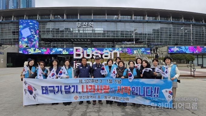 이날 행사에는 정규만 회장(직무대리), 박은주 여성회장 등 회원 15명이 참여해 부산역 광장 일대에서 구민과 관광객, 택시 운전자 등을 대상으로 태극기를 배부하며 나라사랑 정신을 알렸다.