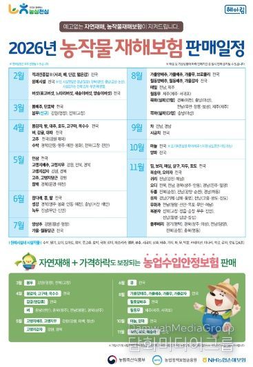 제천시 관계자는 “해마다 태풍, 가뭄, 폭설 등으로 농작물 및 시설물에 큰 피해가 발생하고 있는 만큼 안정적인 영농활동을 위해서 모든 농가가 농작물재해보험에 가입하는 것이 중요하다”라며 “기한 내 빠짐없이 신청해 지원 혜택을 받으시길 바란다”라고 당부했다.