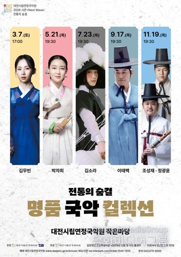 시민행정신문 기자 | 대전시립연정국악원은 ㈜대전방송과 공동 주최로 진행하는 2026 시즌‘전통의 숨결’시리즈 '명품 국악 컬렉션' 공연의 첫 번째 무대를 3월 7일 오후 5시, 국악원 작은마당에서 선보인다.