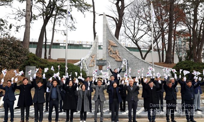 시민행정신문 강갑수 기자 | 1일 잃어버린 조국을 되찾기 위해 외쳤던 3.1 독립만세운동이 107주년을 맞이한 가운데 1976년 건립된 강진군 강진읍 서성리 3.1운동 기념비 앞에서 김준철 강진 부군수를 비롯해 각급 기관단체장 등 참석자들이 기념식을 갖고 대한독립 만세를 외치고 있다.