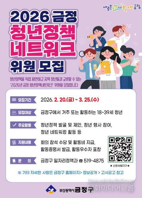 시민행정신문 강갑수 기자 | 부산 금정구는 2월 20일부터 3월 25일까지 2026 금정 청년정책네트워크 위원을 모집한다.