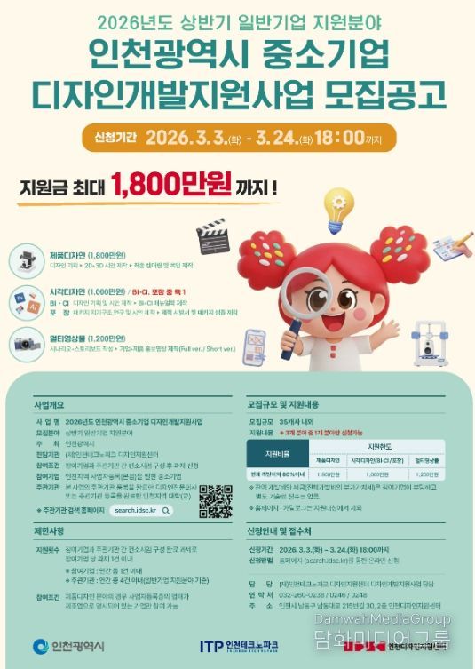 시민행정신문 이세훈 기자 | 인천테크노파크(인천TP)는 지역 중소기업의 디자인 경쟁력 강화를 위해 ‘중소기업 디자인개발지원사업’ 상반기 일반기업 지원분야 과제를 오는 3월 24일까지 모집한다.