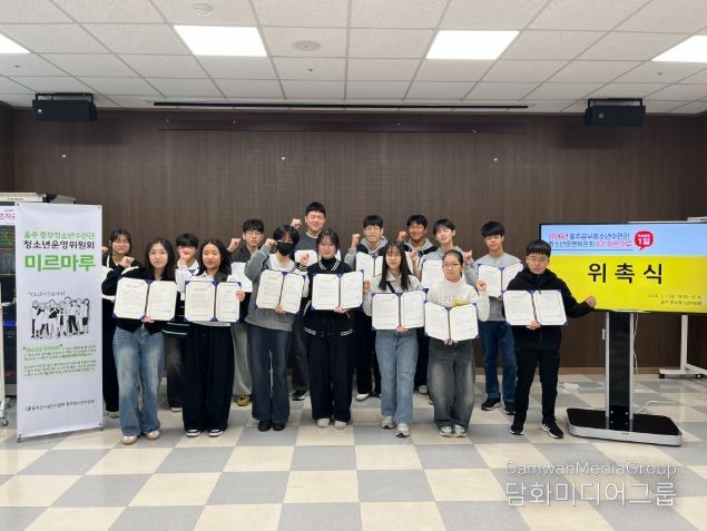 이번 8기 ‘미르마루’ 청소년 위원들은 지난 2월 서류심사와 면접을 거쳐 선발된 지역 내 13세~17세 청소년 16명(연임 6명, 신규 10명)으로 구성됐으며, 이날 위촉식을 기점으로 오는 2027년 2월까지 1년간 활동하게 된다.