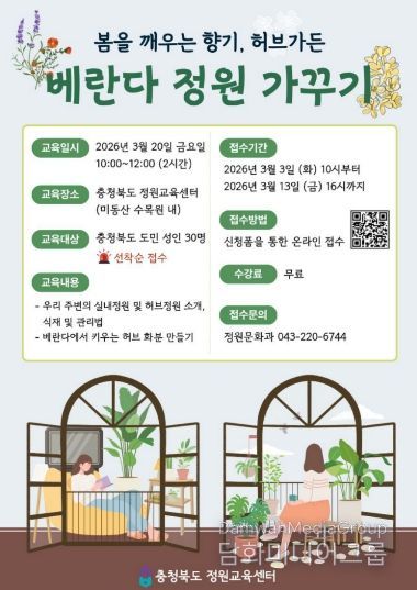 김영옥 충북도 정원문화과장은 “이번 교육을 통해 도민들이 가정 내 베란다라는 일상적인 공간에서 정원이 주는 진정한 가치를 발견하길 바란다”며 “앞으로도 실무 중심의 정원 교육을 꾸준히 마련하여 생활 속 정원 문화가 도민들의 삶에 깊이 뿌리내릴 수 있도록 최선을 다하겠다”고 말했다.