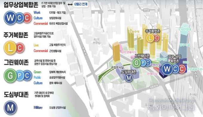 또한 G밸리와 연계해 인공지능(AI)과 정보통신기술(ICT) 중심의 첨단산업 거점을 조성해 새로운 경제중심지로 육성하고자 한다. 개발 면적 내 충분한 녹지를 확보해 쾌적한 환경을 조성하며 녹지생태도심을 구현하는 것 역시 기본계획안의 목표다. 군 시설 현대화를 통해서는 도심형 부대를 건립하고 군 장병 근무 여건 등을 개선할 계획이다.