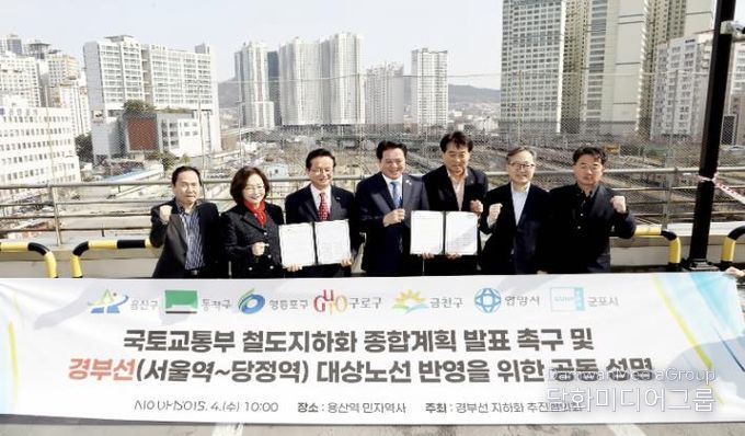 시민행정신문 강갑수 기자 | 금천구는 3월 4일 용산역 ITX회의실에 수도권 7개 기초지방자치 단체가 모여 경부선 철도 지하화 종합계획의 조속한 발표와 대상 노선 반영을 정부에 촉구했다고 밝혔다.