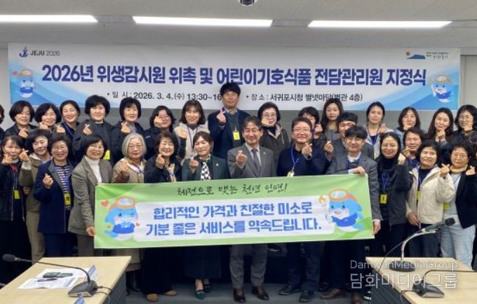 시민행정신문 기자 | 서귀포시는 4일 ‘2026년 위생감시원 위촉 및 지정식’을 열고, 명예공중위생감시원, 소비자식품위생감시원과 어린이 기호식품 전담관리원 등 총 44명을 위촉·지정했다고 밝혔다.