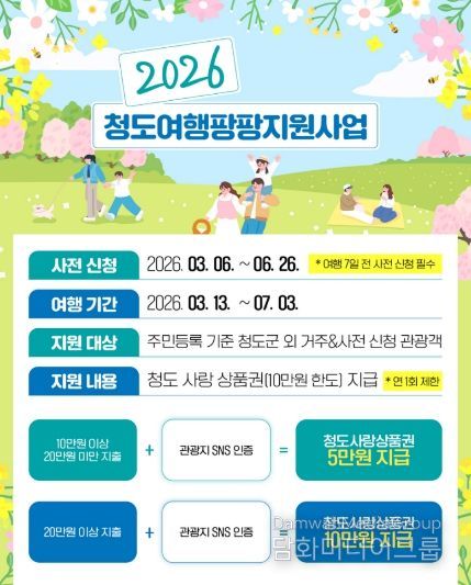 시민행정신문 기자 | 청도군이 지난해 참여자들의 높은 만족도를 확인한 '청도 여행 팡팡 지원사업'을 내실 있게 준비하여 올해 두 번째 사업을 본격적으로 추진한다.