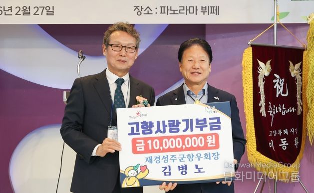 시민행정신문 강갑수 기자 | 재경성주군향우회 김병노 회장이 지난달 27일 서울 종로구에서 열린‘2026년 재경성주군향우회 신년 교례회’에서 고향 발전을 위한 고향사랑기부금을 1,000만 원 기탁했다.