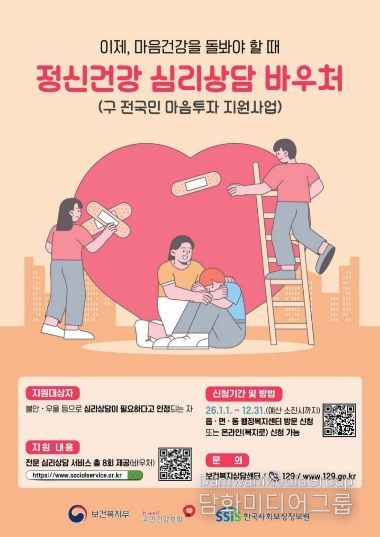 시민행정신문 기자 | 부산 사하구는 우울, 불안 등 정서적 어려움을 겪는 구민을 대상으로 대화 기반의 전문 심리상담 서비스를 제공하는 ‘정신건강 심리상담 바우처사업(구 전 국민 마음투자 지원사업)’을 시행한다고 밝혔다. 이 사업은 자살 예방과 정신질환의 사전 예방을 도모하고 구민의 정신건강 증진을 돕기 위해 마련된 심리지원 정책이다.