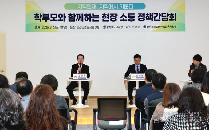 시민행정신문 강갑수 기자 | 충북 괴산군은 6일 군립도서관 다목적홀에서 송인헌 군수와 윤건영 충북교육감이 학부모 30여 명과 함께 지역 교육 발전을 위한 간담회를 열었다고 밝혔다.
