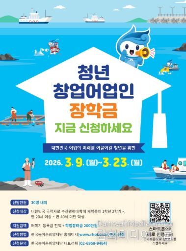 시민행정신문 이존영 기자 | 해양수산부는 3월 9일부터 3월 23일까지 2026년도 1학기 청년창업어업인 장학생 30명을 모집한다고 밝혔다.