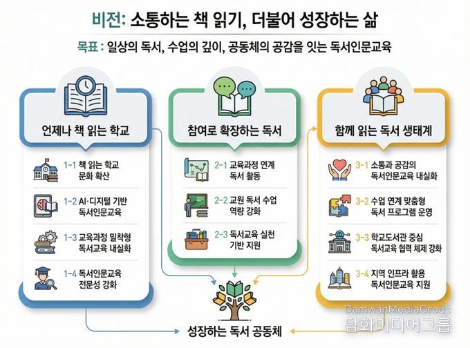 이번 계획은 독서를 일회성 행사에 그치지 않고, 학생의 사고력과 학습 역량을 지탱하는 핵심 기반으로 확장하는 데 중점을 두었다. 이를 통해 독서교육을 학교 교육과정과 학생들의 일상 속에 체계적으로 정착시킬 구상이다.
