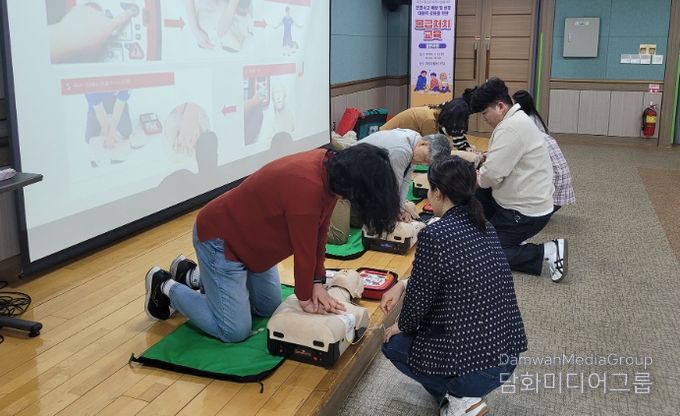 교육 내용은 ▲심폐소생술(CPR) 이론 및 실습 ▲자동심장충격기(AED) 사용법 ▲기도폐쇄 처치법 ▲상황별 응급처치 요령 등 실제 현장에서 즉각 적용할 수 있는 이론과 실습 중심으로 구성됐다.