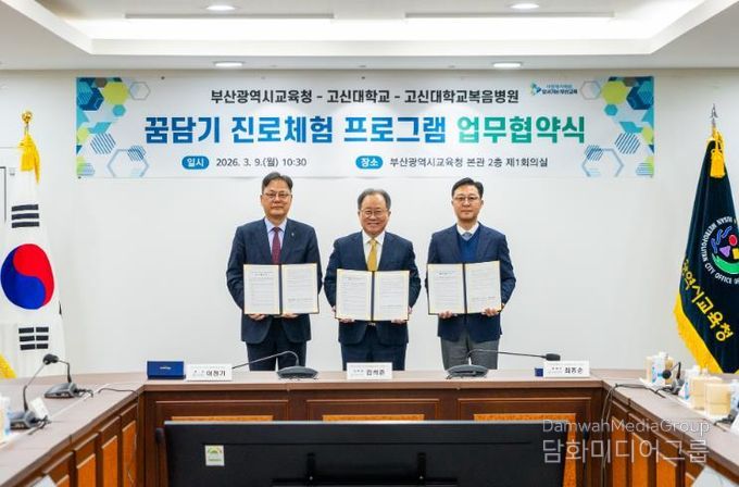 시민행정신문 기자 | 부산광역시교육청은 9일 오전 교육청 회의실에서 고신대학교, 고신대학교복음병원과 ‘꿈담기 진로체험 프로그램’운영을 위한 업무협약을 체결했다.