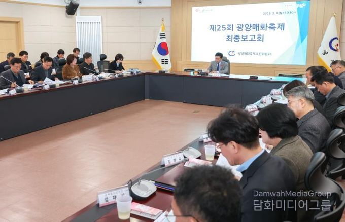 시는 9일 시청 창의실에서 광양시장 주재로 ‘제25회 광양매화축제 추진상황 최종 보고회’를 열고 부서별 추진 실적과 향후 계획을 종합적으로 점검했다.