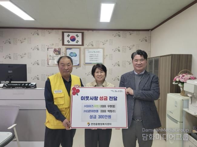 시민행정신문 강갑수 기자 | 연천군 소재 ㈜와이즈이앤지와 ㈜더존이엔엠은 지난 9일 연천읍 행정복지센터를 방문해 관내 어르신들을 위한 경로잔치 준비에 써달라며 성금 300만원을 기탁했다.