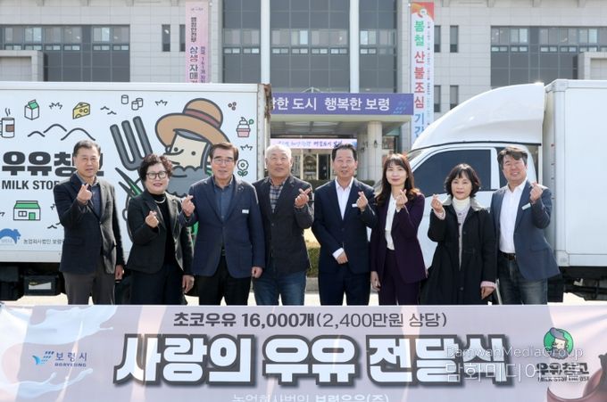 이날 전달된 물품은 보령우유가 직접 생산한 유기농 초코우유 1만 6,400개로, 약 2,400만 원 상당이다.