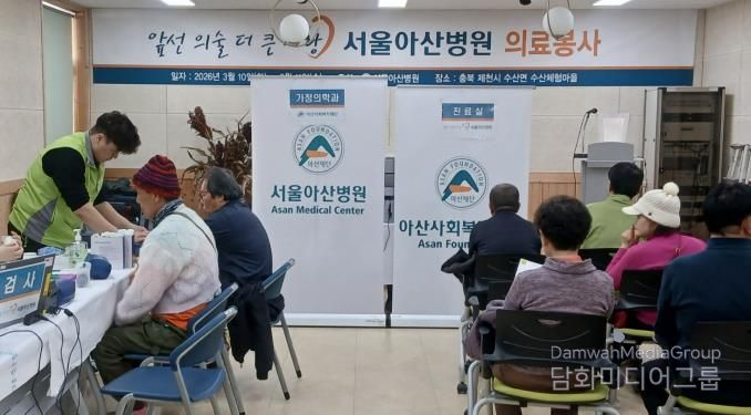 행사를 주관한 수산면 주민자치위원회 김택수 위원장은 “작은 병원에 버금가는 의료진과 장비를 갖추고 먼 곳까지 찾아와 지역 주민의 건강을 돌봐준 서울아산병원 의료진에게 감사드린다”라며 고마움을 전했다.