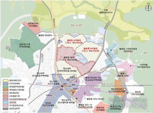 불광동 일대는 ‘연신내역 일대 가이드라인 마련 용역’을 시행하고 주민대표와 논의를 통해 의견을 수렴했다. 이후 구역계를 조정하며 이번 후보지 선정으로 이어졌다.