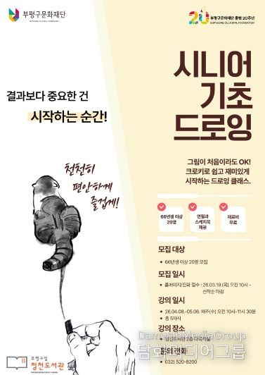시민행정신문 강갑수 기자 | 부평구 청천도서관은 오는 4월 8일부터 지역 어르신을 대상으로 문화예술 프로그램 ‘시니어 기초 드로잉’을 운영한다.