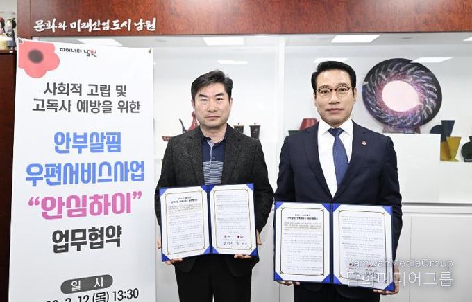 시는 12일 시장실에서 남원우체국과 ‘2026년 안부살핌 우편서비스 사업’ 추진을 위한 업무협약을 체결하고, 위기가구 발굴 및 지원을 위한 민관 협력체계를 강화하기로 했다.