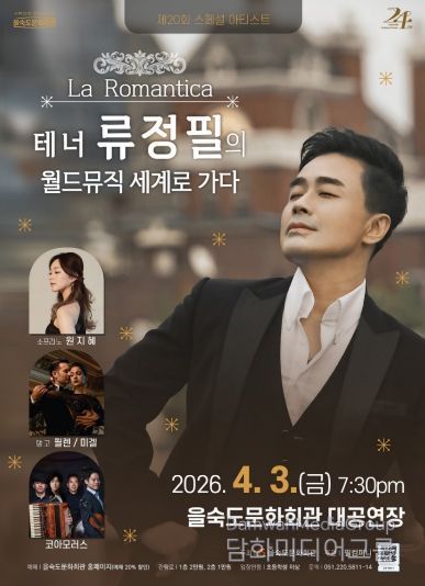 시민행정신문 기자 | 사하구 을숙도문화회관은 오는 4월 3일 오후 7시 30분 대공연장에서 제20회 스페셜 아티스트 'La Romantica - 테너 류정필의 월드뮤직 세계로 가다' 공연을 개최한다.