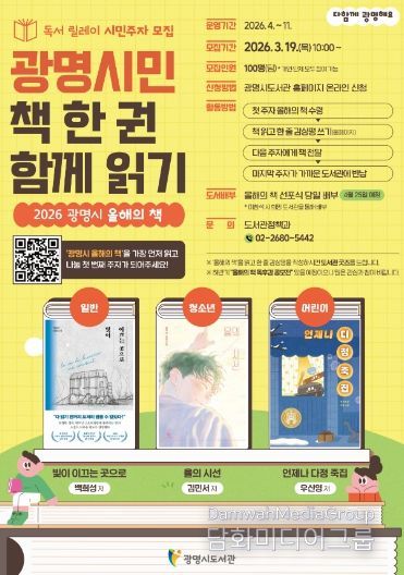 시민행정신문 기자 | 광명시는 ‘2026 광명시 올해의 책’을 함께 읽는 독서릴레이 시민주자를 오는 19일부터 선착순으로 모집한다.