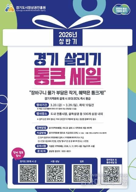 시민행정신문 강갑수 기자 | 부천시는 관내 전통시장과 골목상권 등 39개 상권에서 3월 20일부터 29일까지 ‘2026년 상반기 경기 살리기 통큰 세일’이 열린다고 18일 밝혔다.