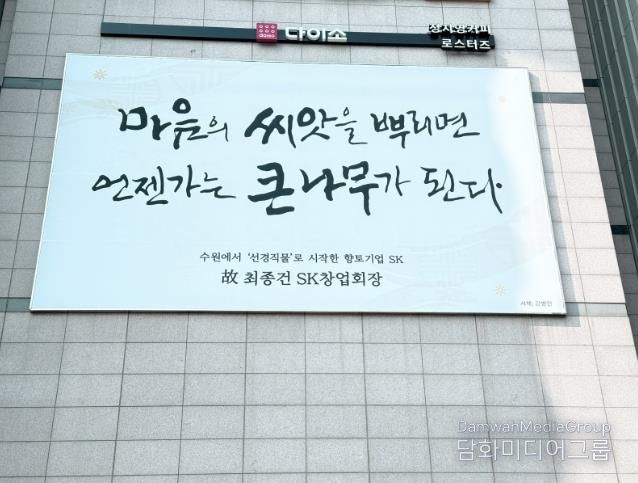 시민행정신문 강갑수 기자 | 수원특례시는 SK 창업주 고 최종건 회장과 고 최종현 선대회장의 어록을 담은 ‘2026 수원희망글판’ 문안을 에이케이(AK)플라자 수원점 외벽과 아이비케이(IBK)기업은행 동수원지점 외벽에 게시했다.