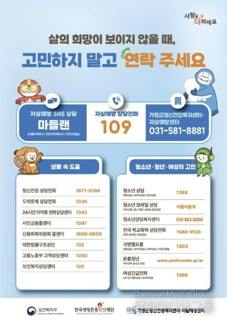 가평군은 특히 “지난해 집중호우 피해와 경기 침체 등으로 주민 스트레스 요인이 증가한 점도 고려해 지역사회 차원의 정신건강 관리 필요성이 커졌다”고 설명했다.