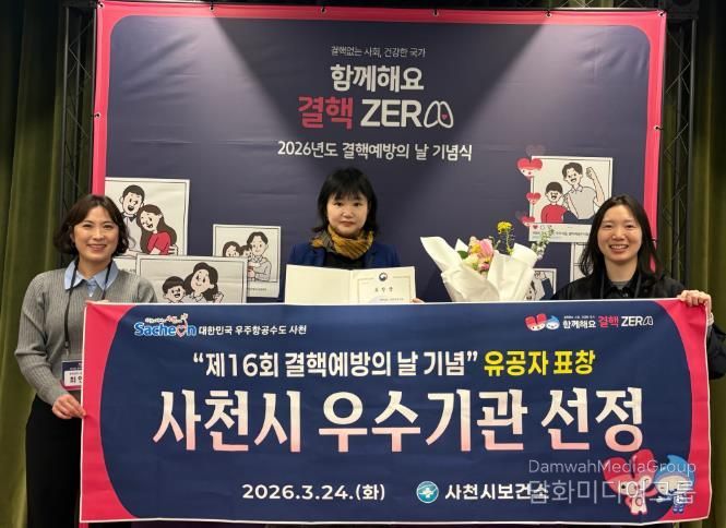 사천시보건소는 24일 서울 영등포구 글래드 여의도에서 열린 ‘제16회 결핵예방의 날’ 기념식에서 국가 결핵 예방사업에 기여한 공로로 질병관리청장 표창을 받았다.