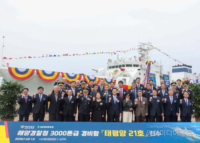 시민행정신문 이존영 기자 | 해양경찰청은 4월 1일, 울산광역시 동구에 소재한 HD현대중공업㈜에서 3000톤급 신형 경비함 태평양 21호(3021함)의 진수식을 개최했다.