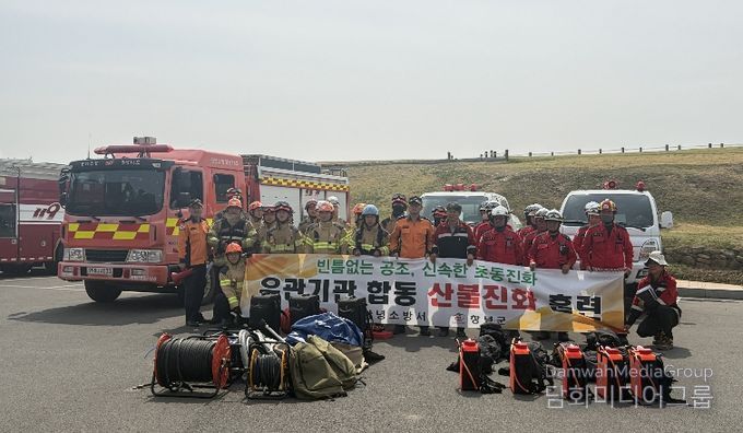 이번 훈련은 교동 고분군 일원에서 진행됐으며, 산불 발생 상황을 가정해 기관별 역할을 점검하고 협업 대응체계를 강화하는 데 중점을 뒀다.