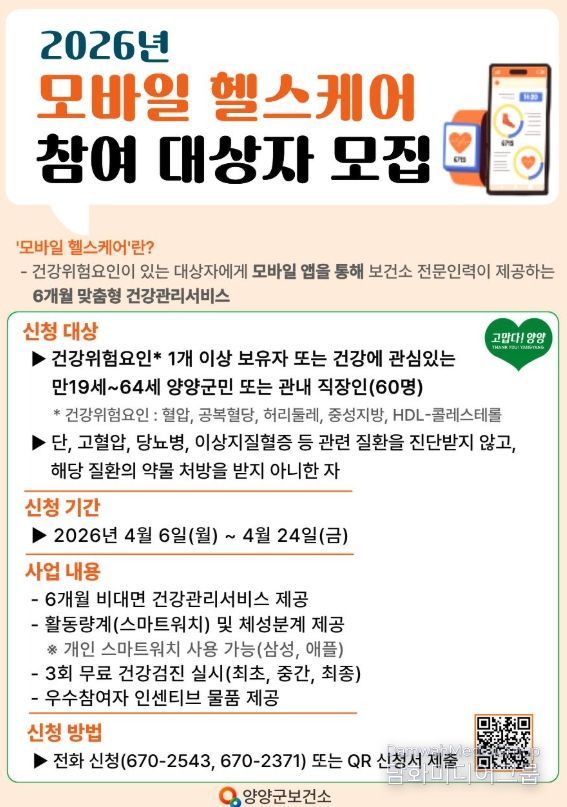 한편, 이번 2026년도 제1회 추가경정예산안은 오는 4월 14일 개회하는 ‘제297회 양양군의회 임시회’에서 각 상임위원회와 예산결산특별위원회의 심도 있는 심의를 거쳐 4월 중 최종 확정될 예정이다.
