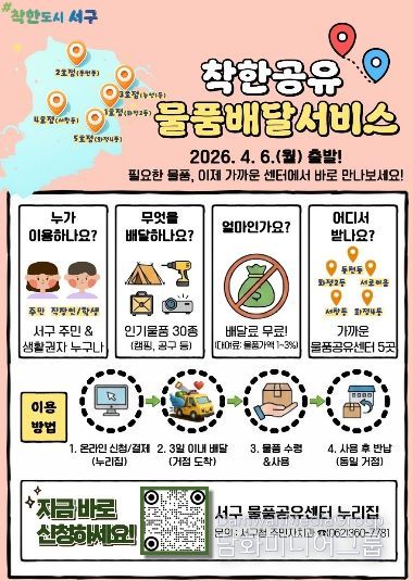 김이강 서구청장은 “주민이 필요로 하는 물품을 가장 가까운 곳에서 편리하게 이용할 수 있도록 서비스 접근성을 높였다”며 “공유를 통해 비용 부담은 줄이고, 함께 나누는 공동체 가치를 확산해 나가겠다”고 말했다.